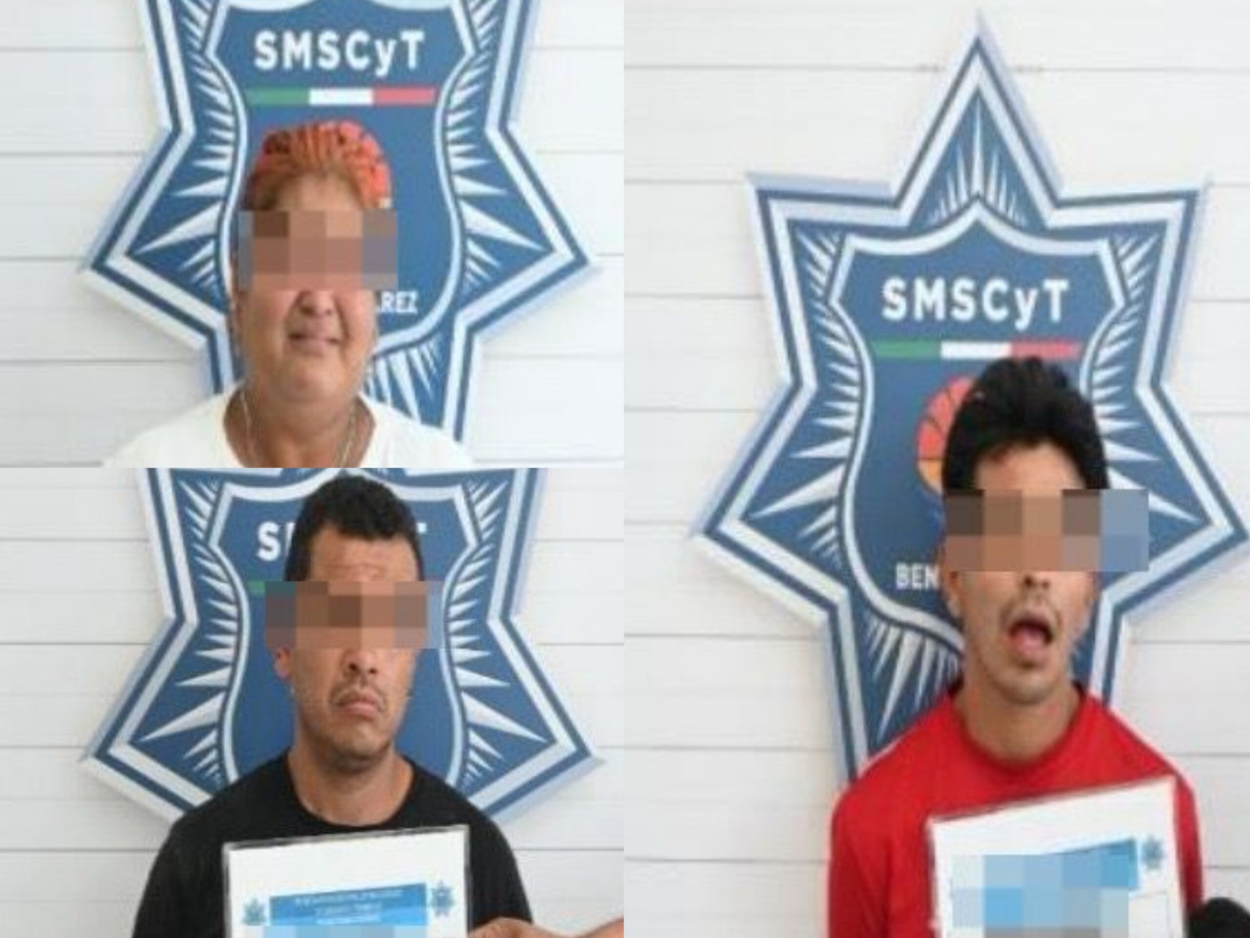 Cancún(Marcrix Noticias).- Elementos de la Secretaría Municipal de Seguridad Ciudadana y Tránsito (SMSCyT) de Benito Juárez detuvieron a Jhonatan Geovani “N”, de 29 años, originario de Yucatán; Carlos Valentín “N”, de 39 años, originario de la Ciudad de México; y Aurora “N”, de 43 años, originaria de Veracruz, presuntos implicados en el delito de robo a comercio.