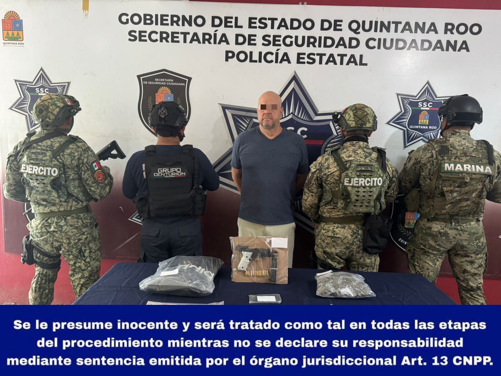 En el operativo participaron elementos de la Secretaría de Seguridad Ciudadana de Quintana Roo, en coordinación con la Secretaría de Marina y la Secretaría de la Defensa Nacional. Durante la inspección se aseguraron 72 bolsitas con vegetal verde, 81 bolsitas con fragmentos cristalinos, dinero en efectivo, un arma de fuego corta, un cargador, un teléfono celular, así como cartuchos calibre 9 milímetros y 5.56 milímetros.