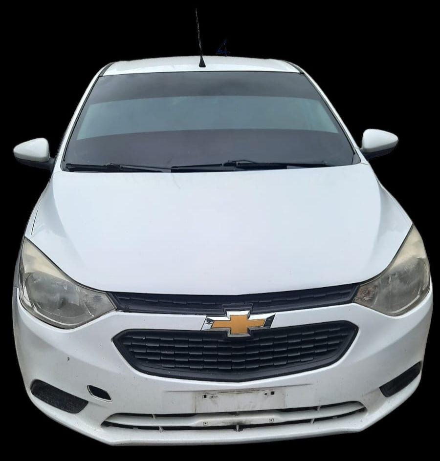 Un vehículo de color blanco de la marca Chevrolet, tipo Aveo con placas de circulación de Quintana Roo.