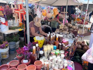 Ofrecen productos de temporada como flores de cempasúchil, velas, pan de muerto, calaveritas de azúcar y artesanías alusivas a la festividad.