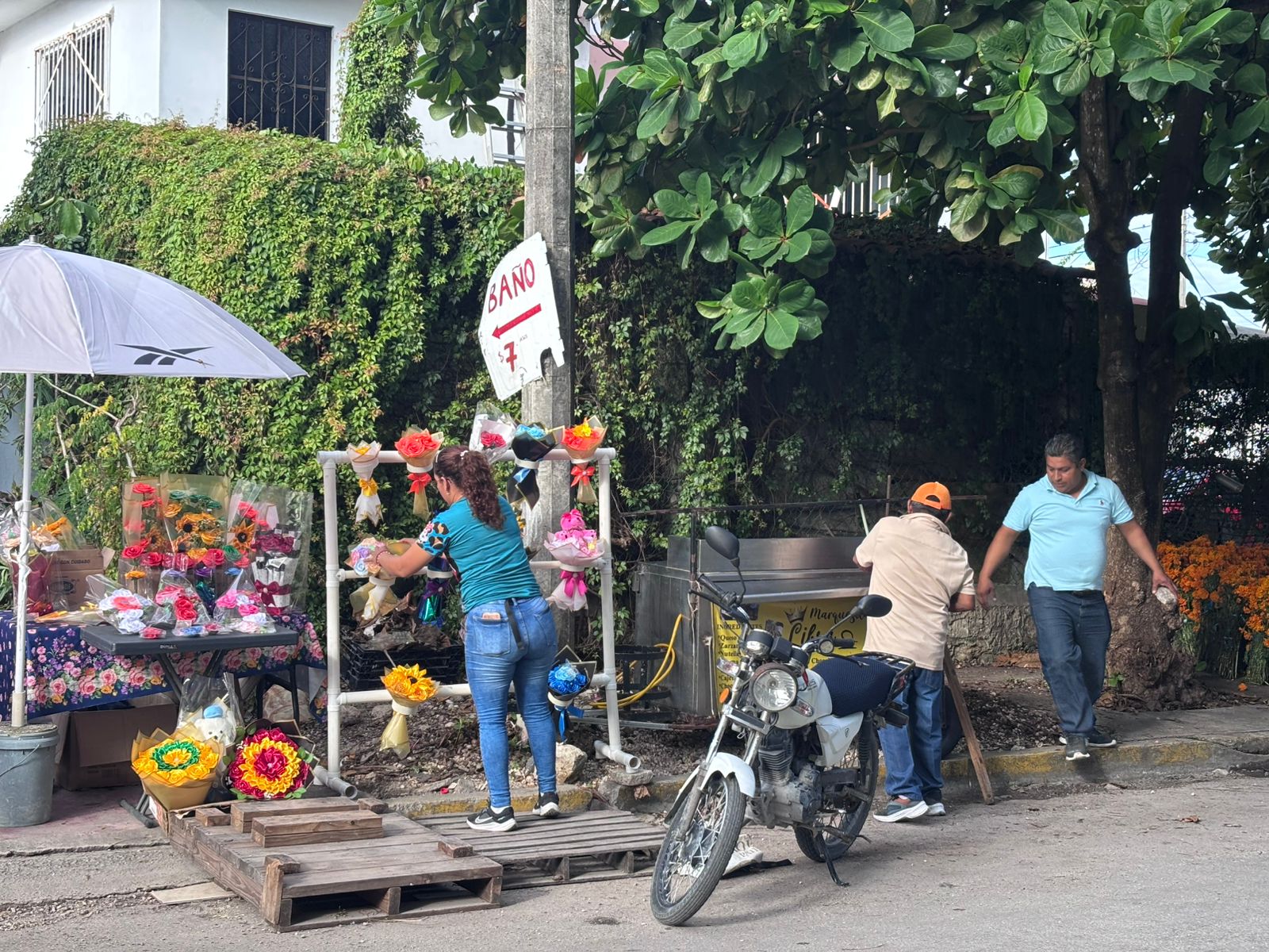Esta afluencia responde a la alta demanda de artículos para ofrendas y adornos por parte de las familias que visitan el cementerio, generando un ambiente de dinamismo económico en la zona y apoyando a comerciantes locales que dependen de estas fechas para incrementar sus ventas.