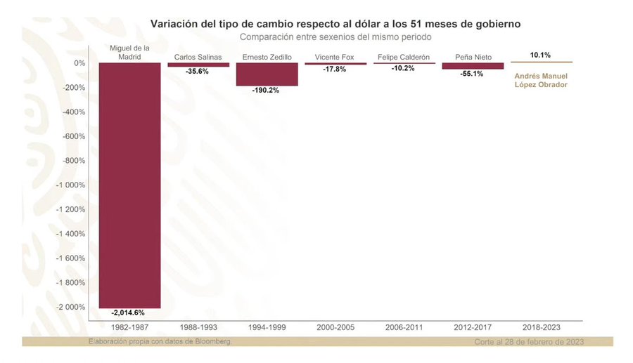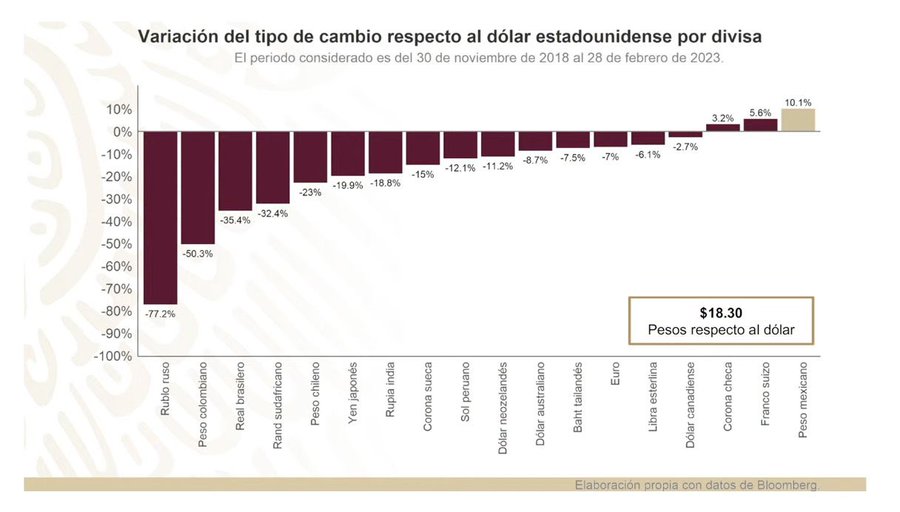 En la conferencia mañanera, el presidente Andrés Manuel López Obrador declaró que en 50 años no se había visto una apreciación del peso frente al dólar cómo está ocurriendo en este periodo de recuperación del 10 por ciento.