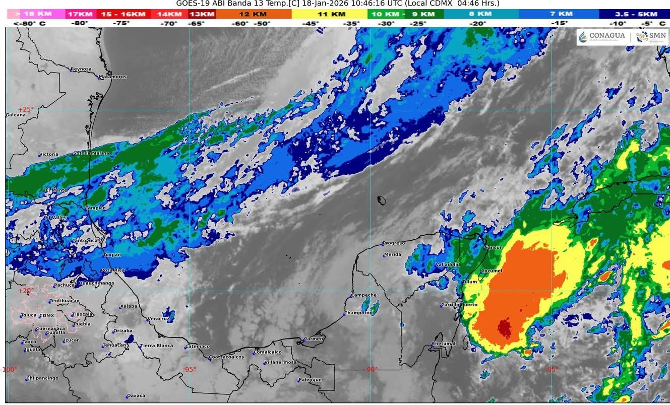 Para la Península de Yucatán se pronostica cielo de medio nublado a completamente cubierto durante gran parte del día, con lluvias fuertes en Campeche y Quintana Roo, mientras que en Yucatán podrían presentarse chubascos aislados. Estas precipitaciones podrían generar encharcamientos e inundaciones en zonas urbanas y de baja altitud.