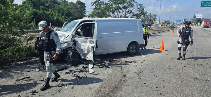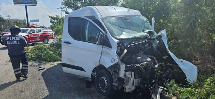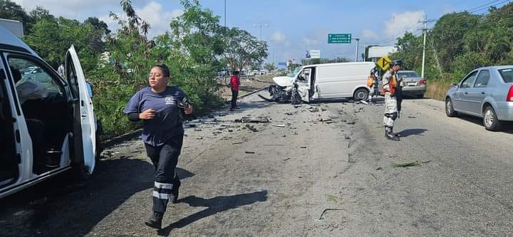 Una camioneta Van quedó atravesada sobre la cinta asfáltica, mientras que la otra de pasaje que transportaba viajeros de Playa del Carmen hacia Cancún, quedó en el camellón con todo el frente averiado y según reportan al menos cuatro heridos, mismos que fueron trasladados a hospitales de Cancún.