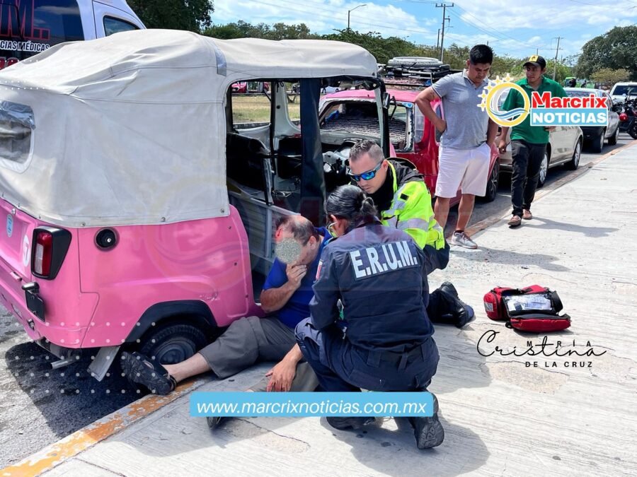Cancún (Marcrix Noticias).- Dos personas quedaron lesionadas luego de que el mototaxi donde viajaban se estrellara contra un vehículo en la plaza Cancún Mall.