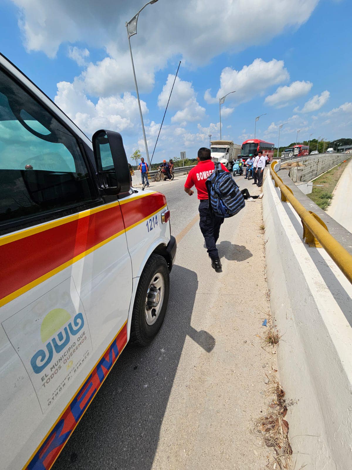 Chetumal, Marcrix Noticias.- Dos elementos de la Marina Armada de México, transitaban en una motocicleta, de norte a sur, cuando al parecer fueron embestidos por un vehículo desconocido, quedando tirados en el puente de entrada a la ciudad de Chetumal.