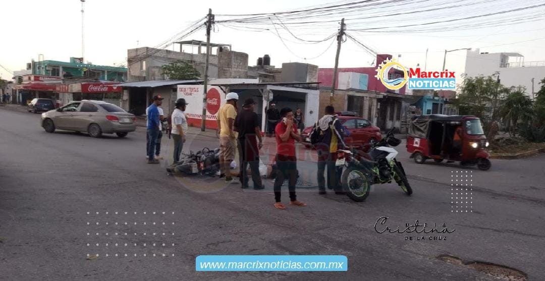Cancún(Marcrix Noticias).- Una pareja de motociclistas sufrió un aparatoso accidente cuando llevaba a sus dos hijos a la escuela en la Región 248 de Cancún.