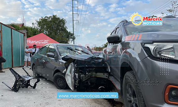Cancún (Marcrix Noticias).- La tarde de hoy lunes el conductor de un vehículo se metió a una marisquería y terminó estrellando se contra una camioneta que se encontraba estacionada.