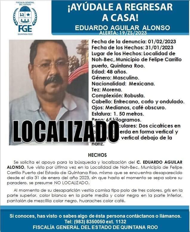 El hombre fue identificado como Eduardo Aguilar Alonso de 48 años de edad, quien era Comisariado Ejidal, quién había sido privado de la libertad el pasado 31 de enero al rededor de las 20:30 horas.