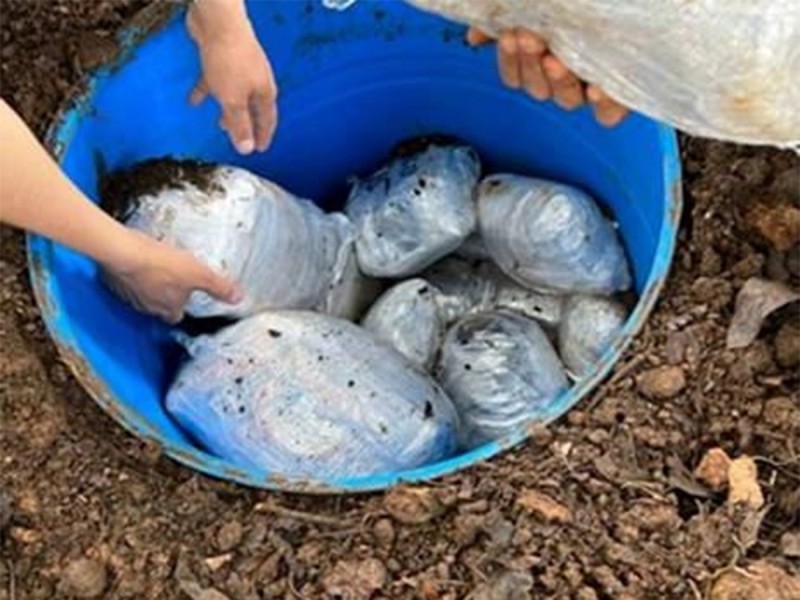 Se indicó que el hallazgo se realizó el pasado 16 de octubre cuando, en seguimiento a la información recabada, se incrementaron los patrullajes de reconocimiento terrestre en las inmediaciones de la localidad de Matanguarán, de Uruapan.
