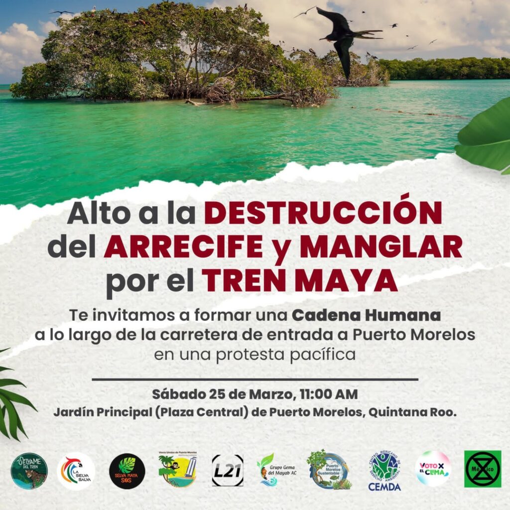 Alertan además sobre la falta de una vialidad que soporte el tráfico de carga para movilizar el balasto, lo cual implicará “la muy posible destrucción de los manglares y su hábitat para dar paso al transporte de carga”, añade la misiva.
