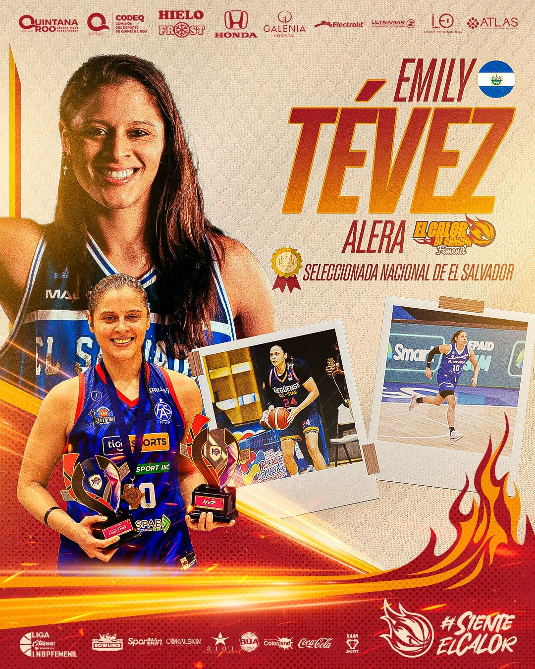 Cancún (Marcrix Noticias).– El Calor de Cancún Femenil continúa fortaleciendo su plantilla de cara a la Temporada 2026 de la Liga Caliente.Mx LNBP Femenil, al anunciar la incorporación de la basquetbolista salvadoreña Emily Michelle Tevez Morán, quien se convierte en el cuarto refuerzo del equipo.