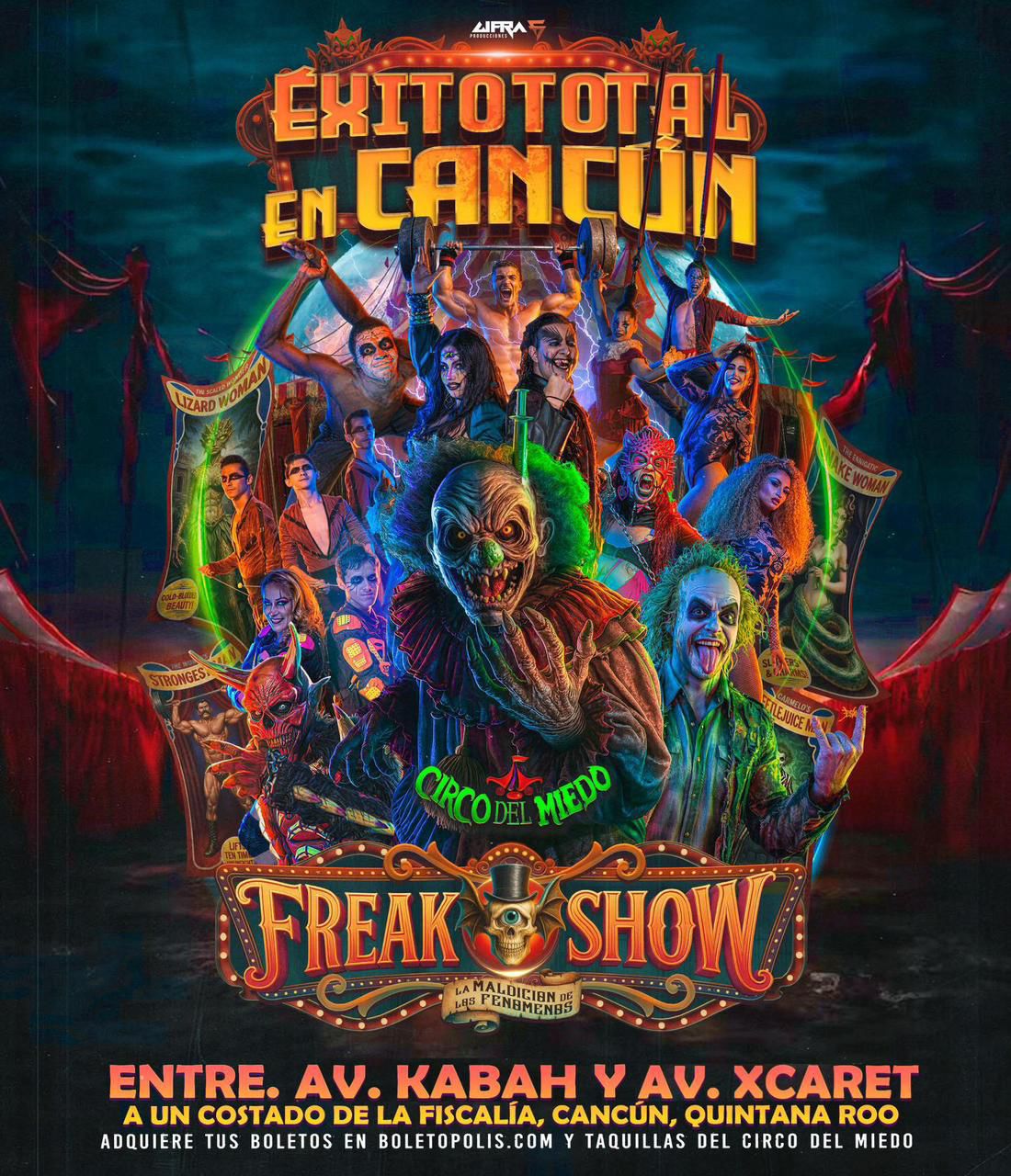 Cancún-El Circo del Miedo vive un auténtico éxito en Cancún con la presentación de su nuevo espectáculo 2026 titulado “Freak Show”, una propuesta que combina terror, emoción y destreza extrema en un solo escenario, cautivando noche tras noche al público cancunense.