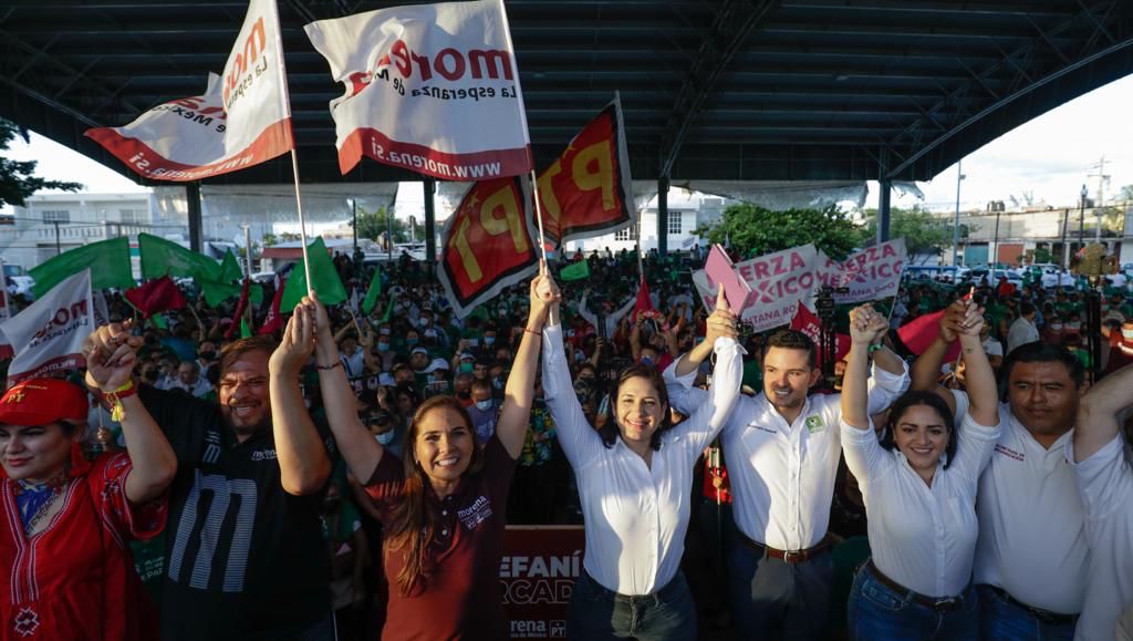 Asiste el dirigente estatal del PVEM con la candidata Mara Lezama, al mitin de arranque de Estefanía Mercado, candidata a diputada local por el Distrito 10 en Solidaridad