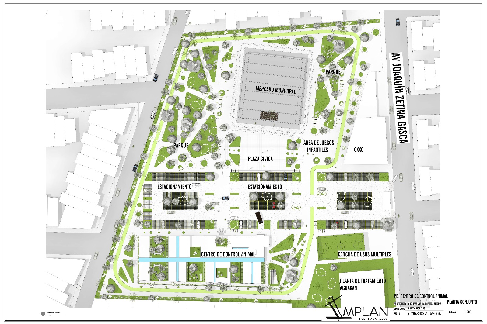 En el mismo predio se construiría un Centro de Control y Bienestar Animal para atender la demanda de servicios y espacios destinados a las mascotas de Puerto Morelos, con áreas de adopción, consultorios, cuarentena, quirófano, recuperación, esterilización, crematorio, eutanasia, albergue con 61 jaulas, espacios de socialización, reconocimiento, dirección, sala de juntas, baños, farmacia, bodega, cuarto de máquinas y un local para concesión.