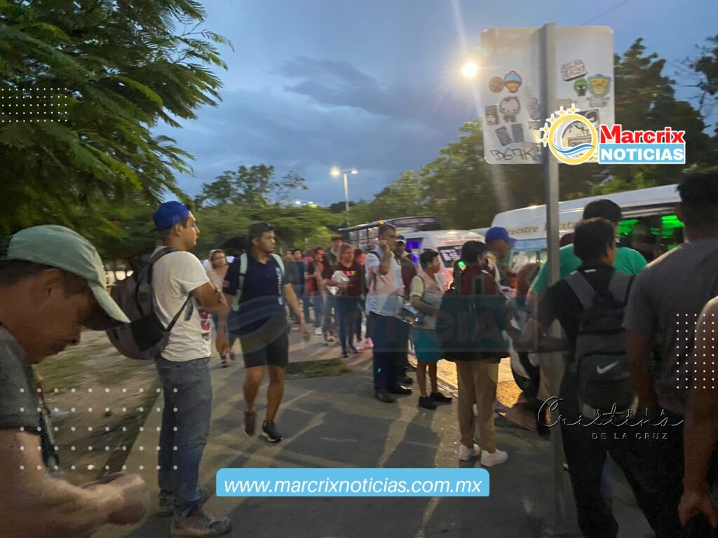 Por la tarde, el caos se repite, las mismas personas ahora buscan volver a casa, pero la urgencia de regresar por la lejanía y la oscuridad vuelve prácticamente a la avenida Tulum en un hormiguero.