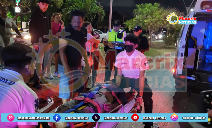 Cancún (Marcrix Noticias).- La noche de este viernes, un motociclista de oficio carpinteto fue atropellado por un vehículo en la avenida José López Portillo con avenida Nichupté de Cancún, a la altura de Full Gas.