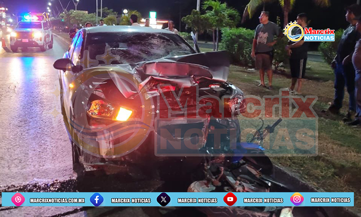 Del fuerte impacto el motociclista quedó gravemente herido y fue trasladado al Hospital General de Cancún