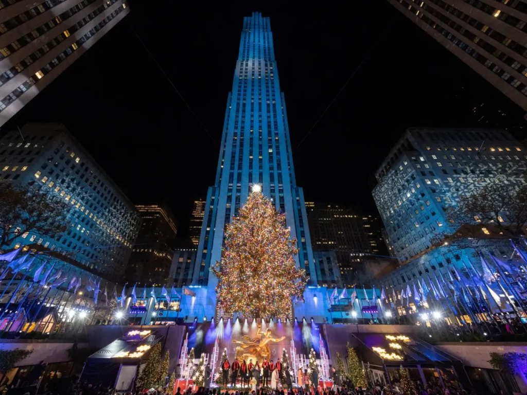 Nueva York (Marcrix Noticias).- El emblemático árbol de Navidad de Rockefeller Center, en Nueva York, fue iluminado la noche del miércoles, inaugurando así la temporada festiva navideña en la ciudad, un acontecimiento que reunió a cientos de personas pese a un clima lluvioso y frío.