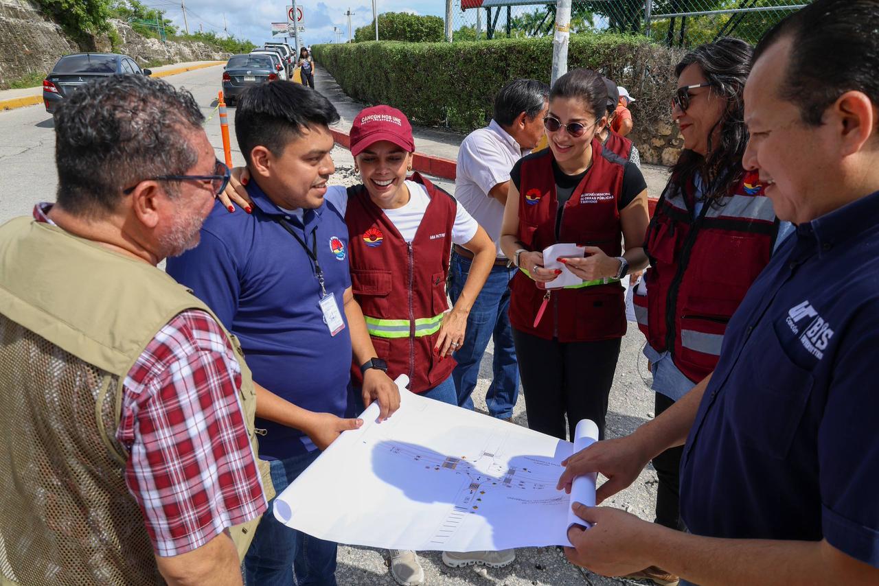 Acompañada de la secretaria municipal de Obras Públicas y Servicios, Samantha Hernández Cardeña, la Primera Autoridad Municipal informó que el proyecto integral beneficia de forma directa a los alumnos de las dos universidades de esa zona que son la UT y La Salle Cancún.