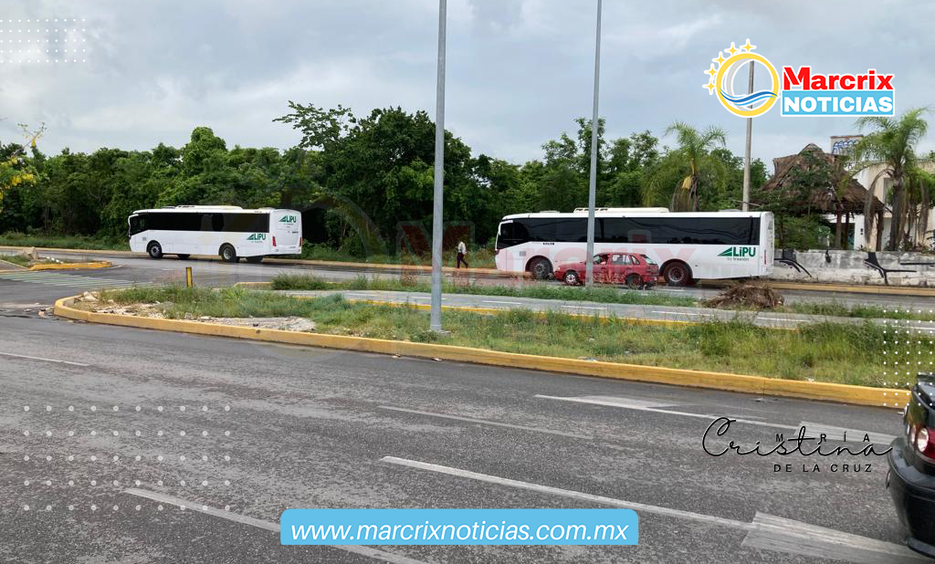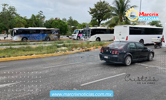 Cancún (Marcrix Noticias).- La empresa de transporte de trabajadores de hoteles LIPU, que se ubica sobre la avenida Chac Mool, a unos metros de la avenida Galaxias del Sol, se adueñó de dos carriles de la citada vía para estacionar sus autobuses, situación que ha irritado a automovilistas y comerciantes.