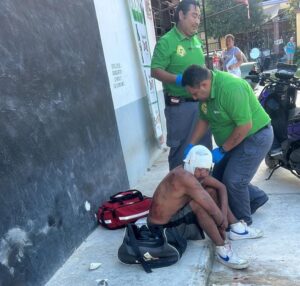 Cancún (Marcrix Noticias).- En Cancún, a las afueras de un SIX, un delincuente tundió a golpes a un anciano, causándole diversas heridas y hematomas, que provocaron se desangrara en la banqueta por más de una hora, hasta que por llegaron las autoridades y la ambulancia para auxiliarlo.
