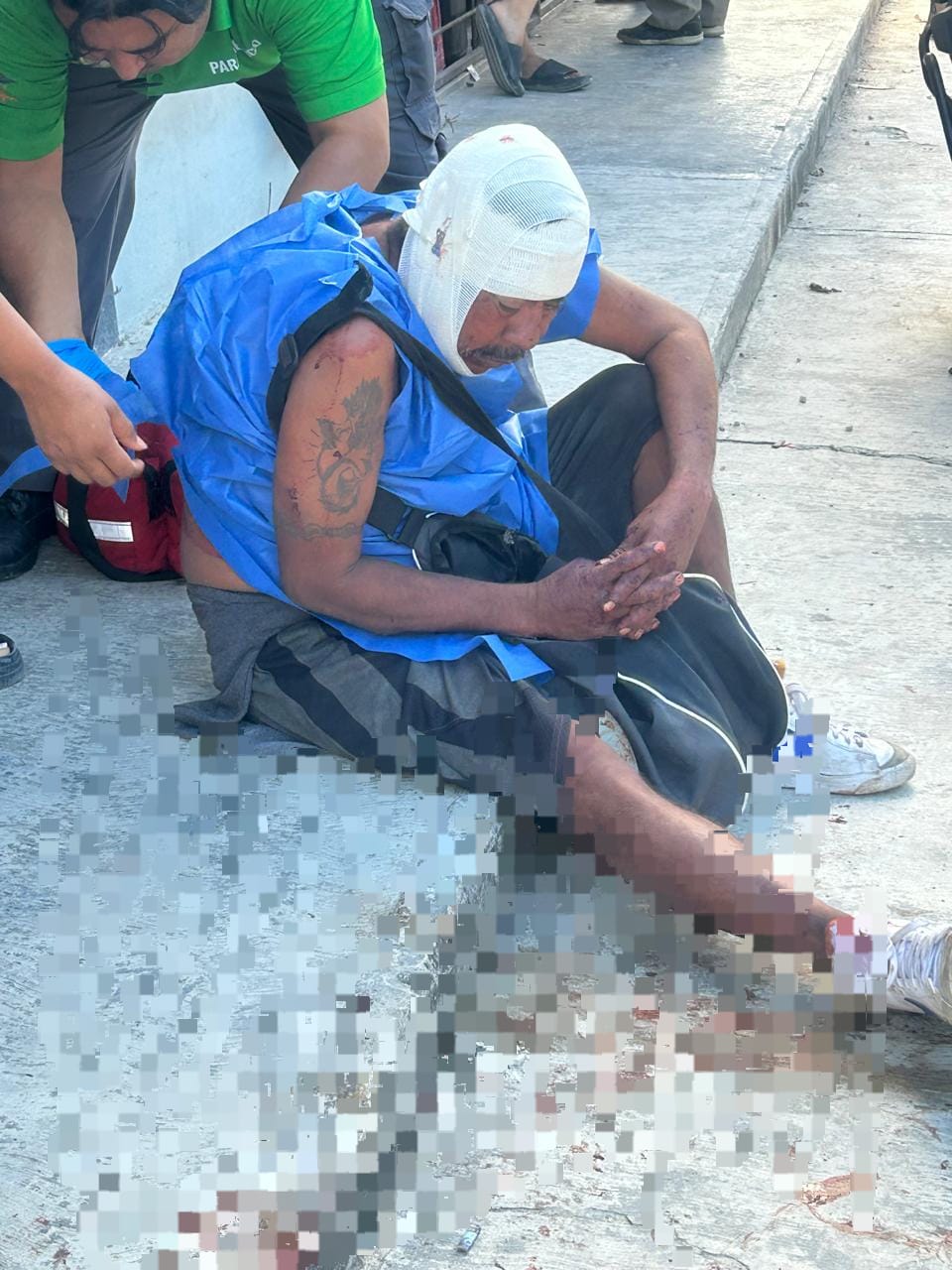 Finalmente, paramédicos llegaron al lugar para atender a este anciano, a quien le vendaron la cabeza para cubrirle las heridas y detener el sangrado.