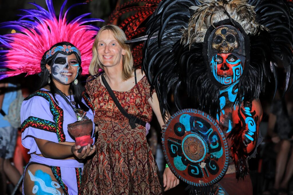 Cientos de isleñas, isleños y visitantes disfrutaron al anochecer de la procesión Xtabay-Venado, de las interpretaciones del cantante Miguel Lara Díaz y del grupo “Al Son del Corazón” con el bailable “Los Espantos”, posteriormente, se realizó el “Concurso de Catrinas”, la presentación de Innova Dance (La Bruja/La Llorona) y Backyard Circus.