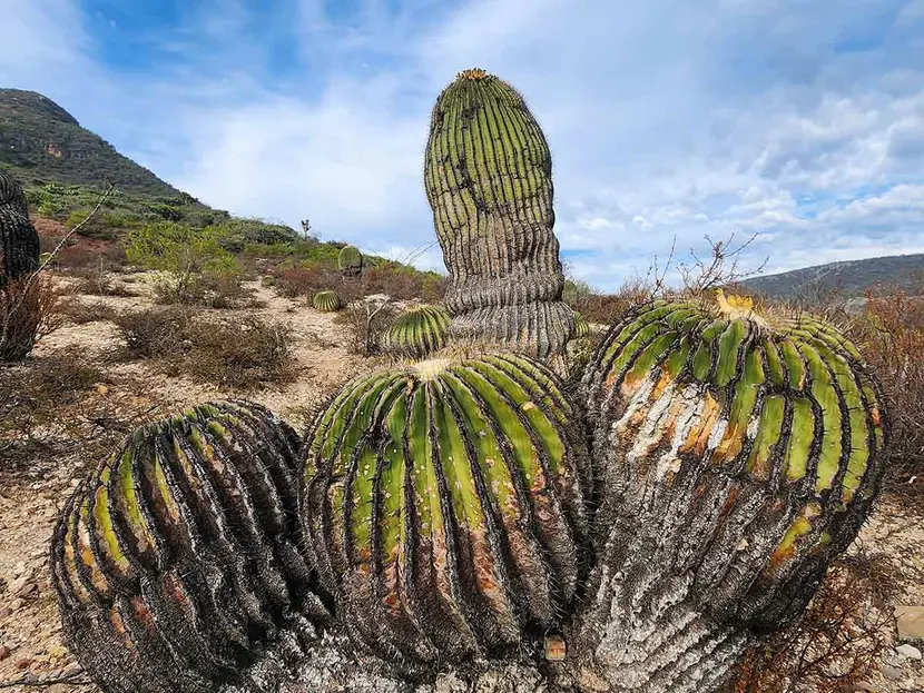 Porque unas 40 hectáreas de este territorio, albergan diferentes tipos de biznagas, algunas de ellas solamente localizables en ese mismo sitio, como biznaga gigante, cuyo nombre científico es Echinocactus platyacanthus, y a la que también llaman ‘asiento de suegra’, cuando todavía no crece muy alto.