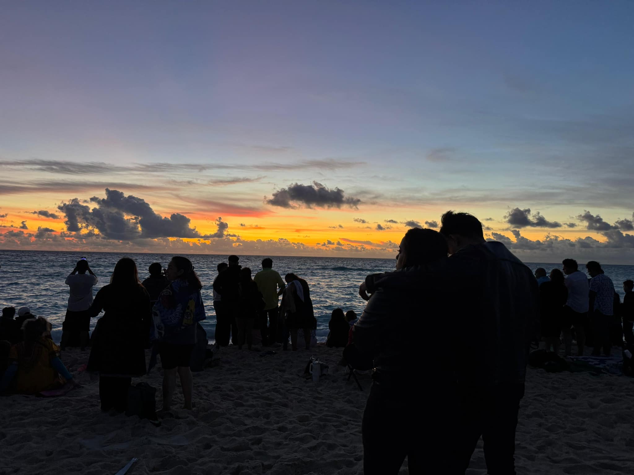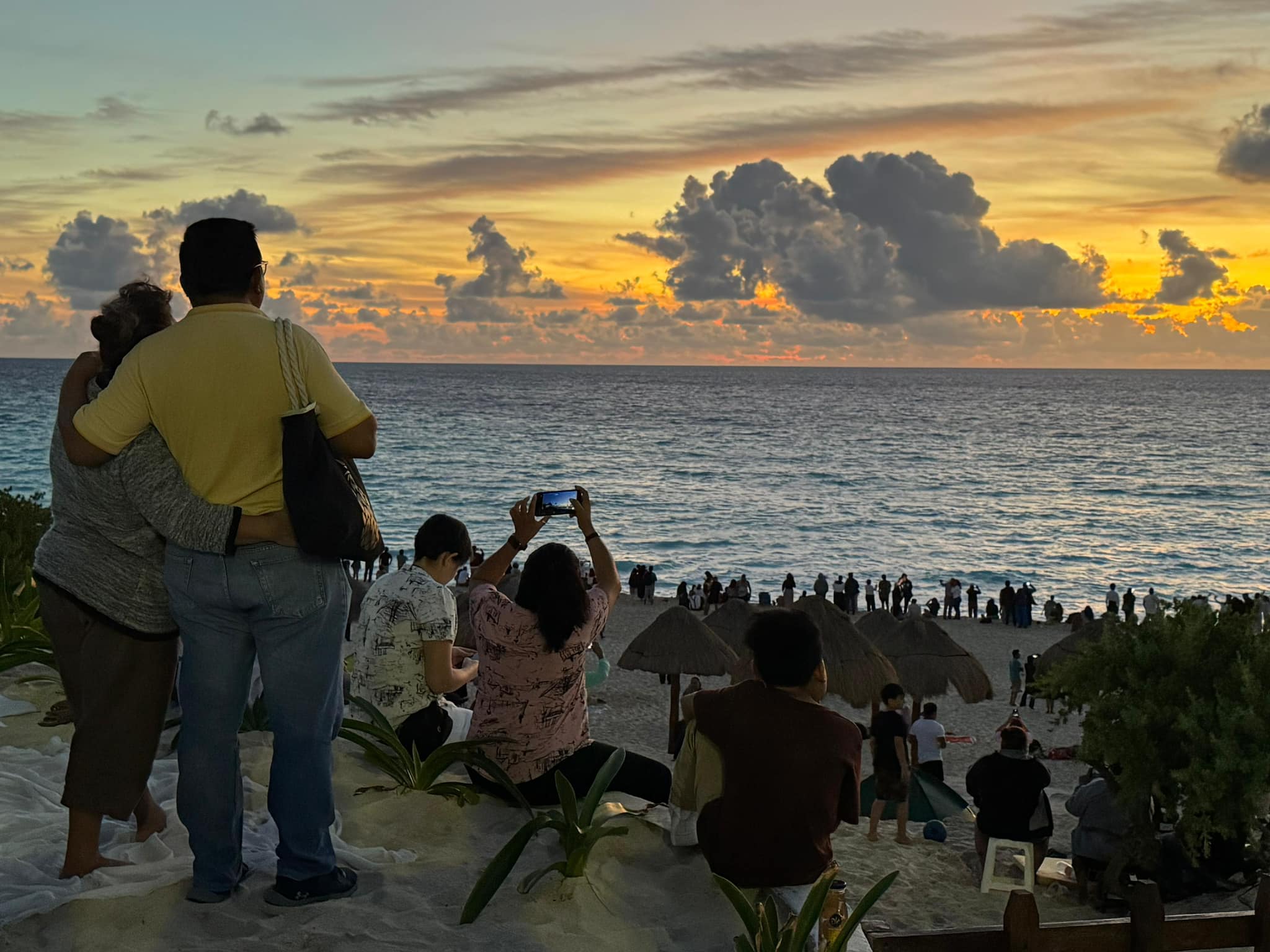 En Cancún en Playa Delfines, el emblemático mirador las personas estuvieron recibiendo los primeros rayos del sol a las 6 de la mañana de este 2025.