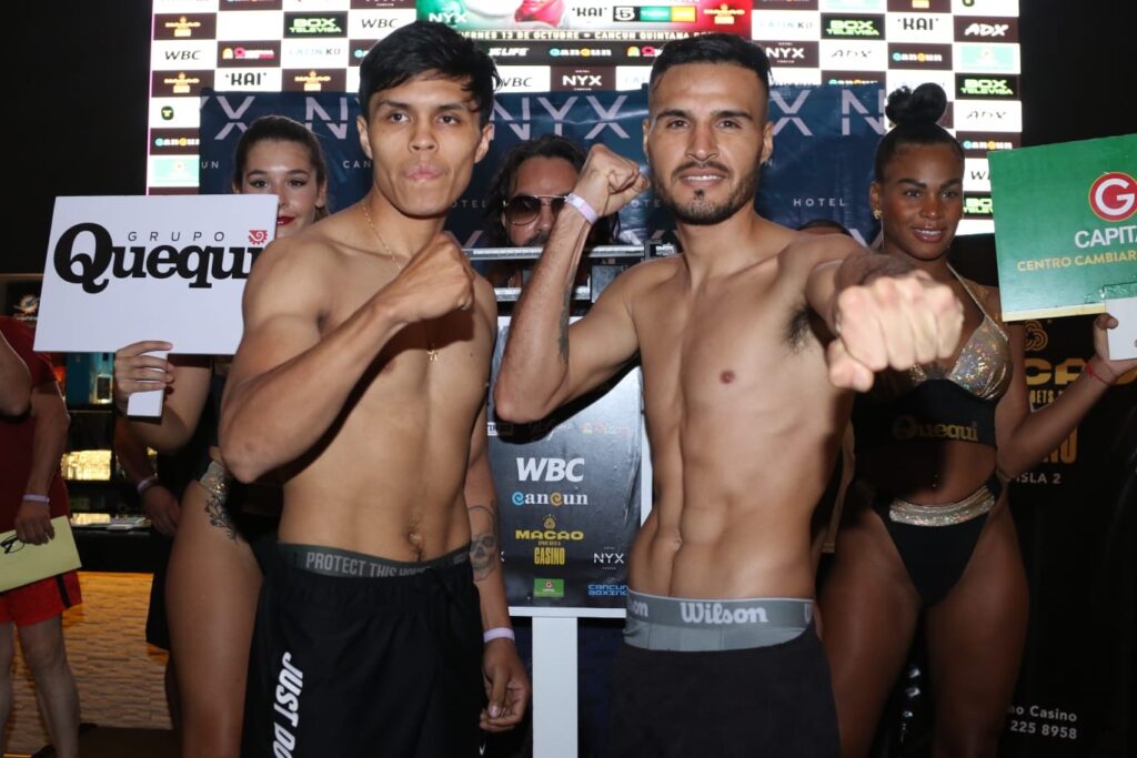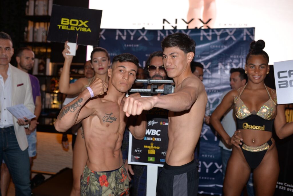 Este jueves, durante la ceremonia de pesaje realizada en las flamantes instalaciones del Casino Macao Cancún, ubicadas dentro de Plaza La Isla 2, que tuvo al afamado presentador mexicano Lupe Contreras, el queretano Cuéllar Contreras marcó 54 kilogramos, mientras que Luis Miguel Concepción Montiel registró 53.100 kilos ante la mirada escudriñadora de los integrantes de la Comisión de Box y Lucha Libre del municipio de Benito Juárez, que estuvo encabezada por Florentino López, así como de sus respectivos entrenadores y de los promotores Pepe Gómez y Guillermo Rocha.
