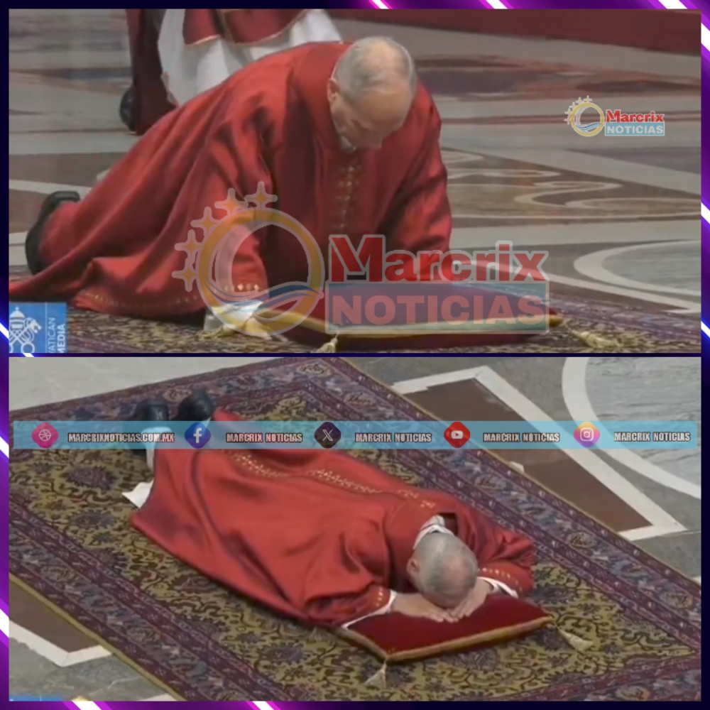 Ciudad de Vaticano. ( Marcrix Noticias).- El Papa León XIV encabezó este Viernes Santo la celebración de la Pasión de Cristo en el Vaticano, donde realizó el tradicional gesto de postrarse completamente en el suelo al inicio del rito, como símbolo de humildad y penitencia.