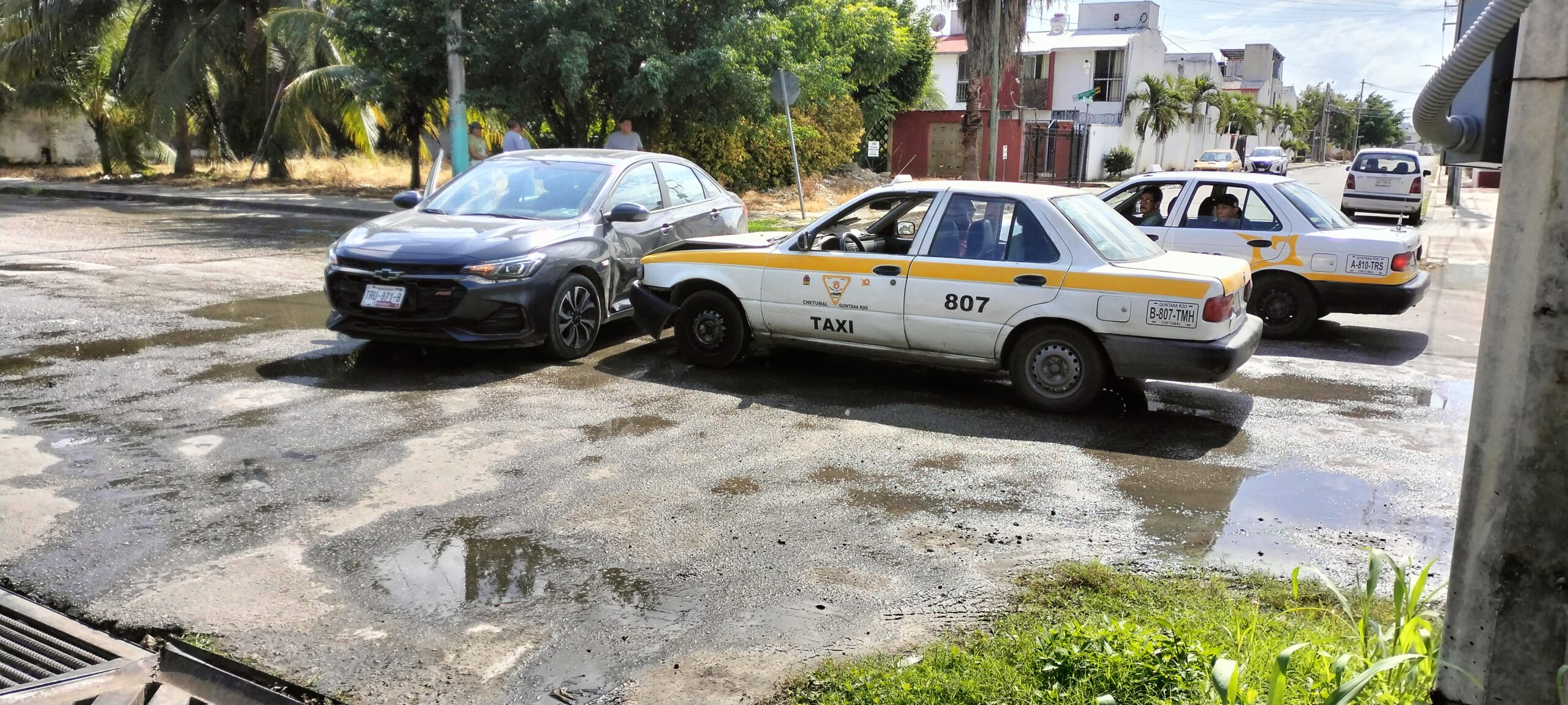 El percance ocurrió está tarde entre un Automóvil Chevrolet color gris oscuro y un taxi del Sindicato Único de automóviles de Alquiler (SUCHAA) en el fraccionamiento Maya Real de Chetumal.