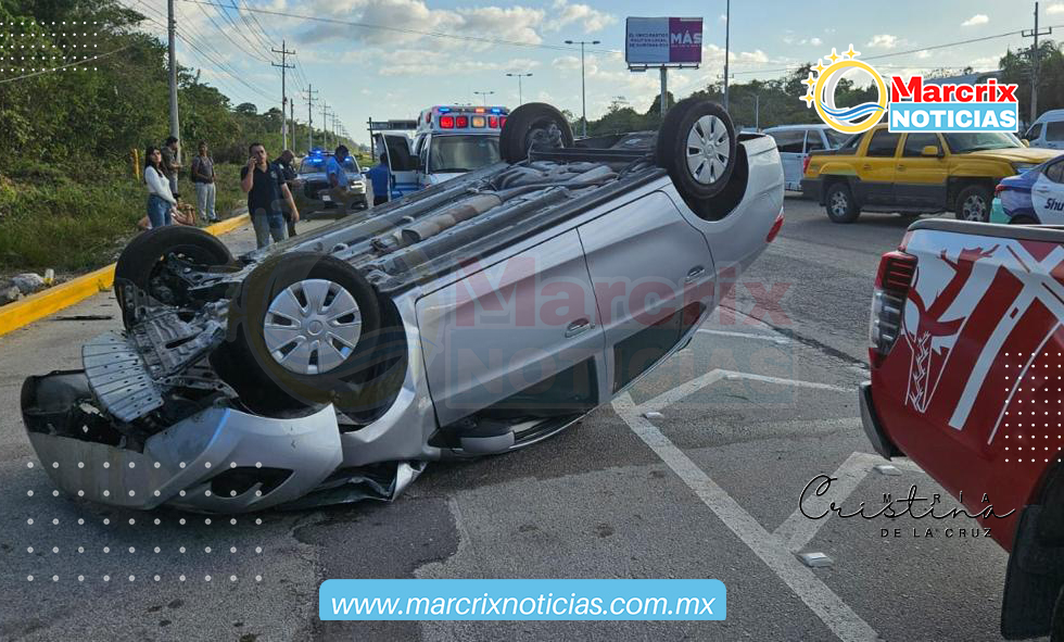El percance se suscitó cuando el vehículo Attitude, color gris, 5 puertas, con placas de circulación del estado de Quintana Roo, USM-478-L, que era conducido por José de Jesús Gomez Rodriguez, a exceso de velocidad y al perder el control por un derrape golpeó levemente en el costado derecho a la camioneta VW Transporter color blanco y terminó su local carrera volcado totalmente sobre su toldo, llantas para arriba.