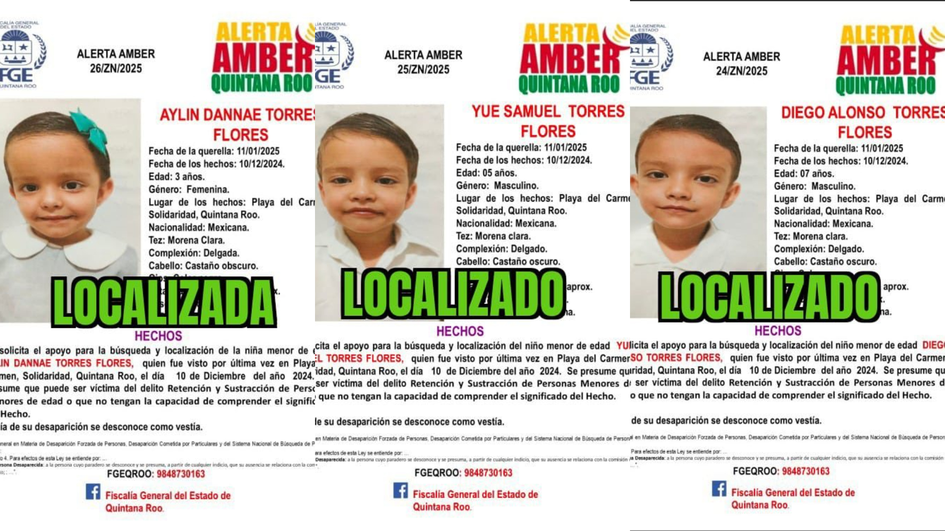 La Fiscalía desactivó la Alerta Amber, luego de encontrar a Aylin Dannae, Yue Samuel y Diego Alonso Torres Flores, desaparecidos desde diciembre de 2024.