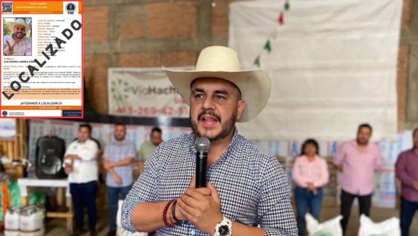 Informamos que ha sido localizado con vida el expresidente municipal de Zinapécuaro, Alejandro Correa Gómez, quien fue reportado como desaparecido el pasado 2 de noviembre. pic.twitter.com/kfGGwKZwda