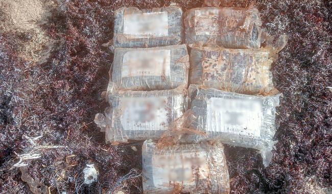El segundo hecho se registró en la playa Bosh, donde personal de ambas instituciones ubicó ocho paquetes con las mismas características de los localizados anteriormente, también abandonados entre la arena y el sargazo.