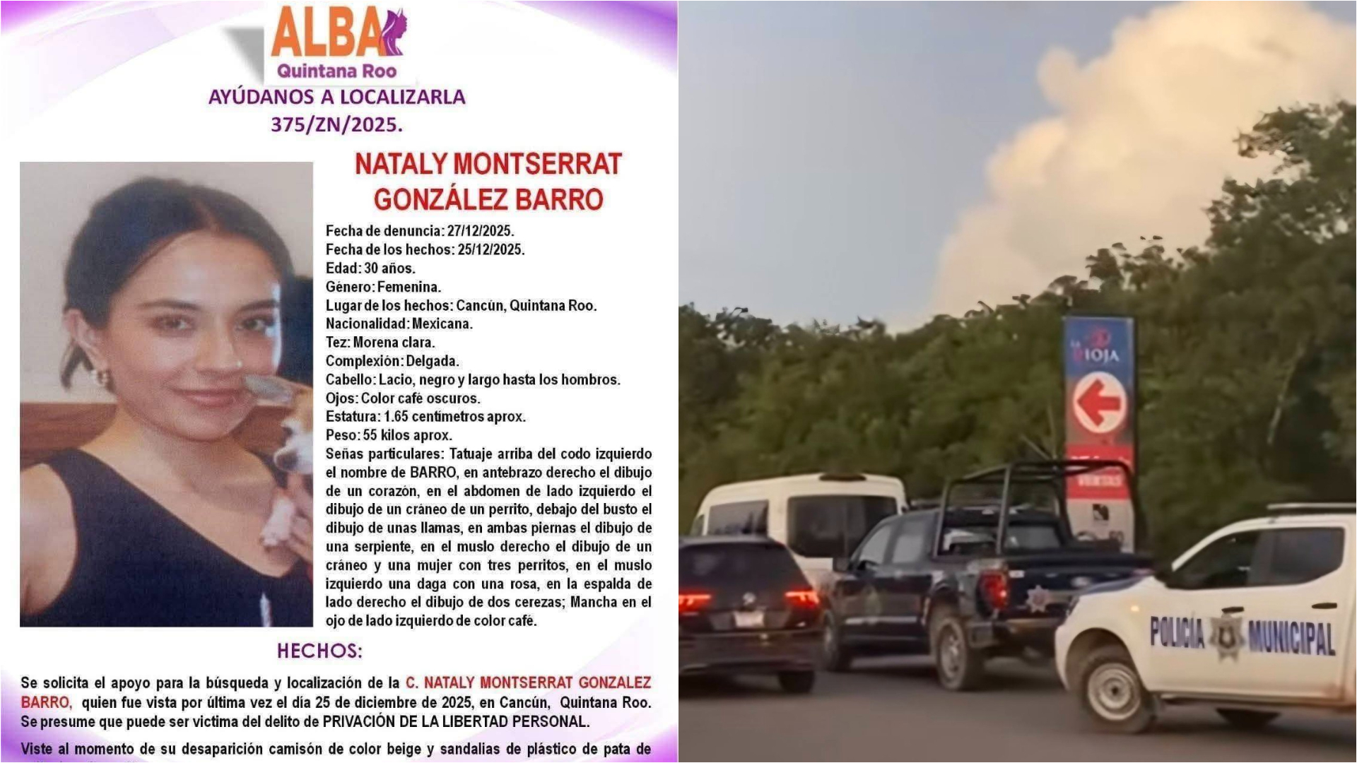 Cancún (Marcrix Noticias).– La tarde de este domingo fue localizado el cuerpo de Nataly Montserrat González Barrón, de 30 años de edad, en un área verde en los alrededores del fraccionamiento Jardines del Sur 2 de Cancún.