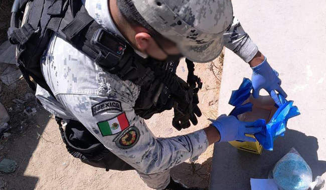 Baja California(Marcrix Noticias).- En Baja California, integrantes de la Guardia Nacional (GN) aseguraron una bolsa de regalo con pastillas de posible fentanilo.