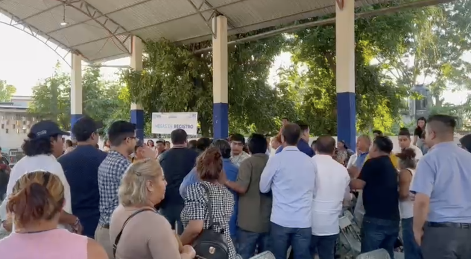 En un video, se observa a varios panistas empujarse e intercambiar golpes, mientras una mujer con el micrófono les pide calma.