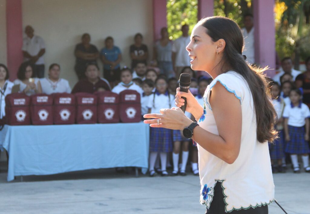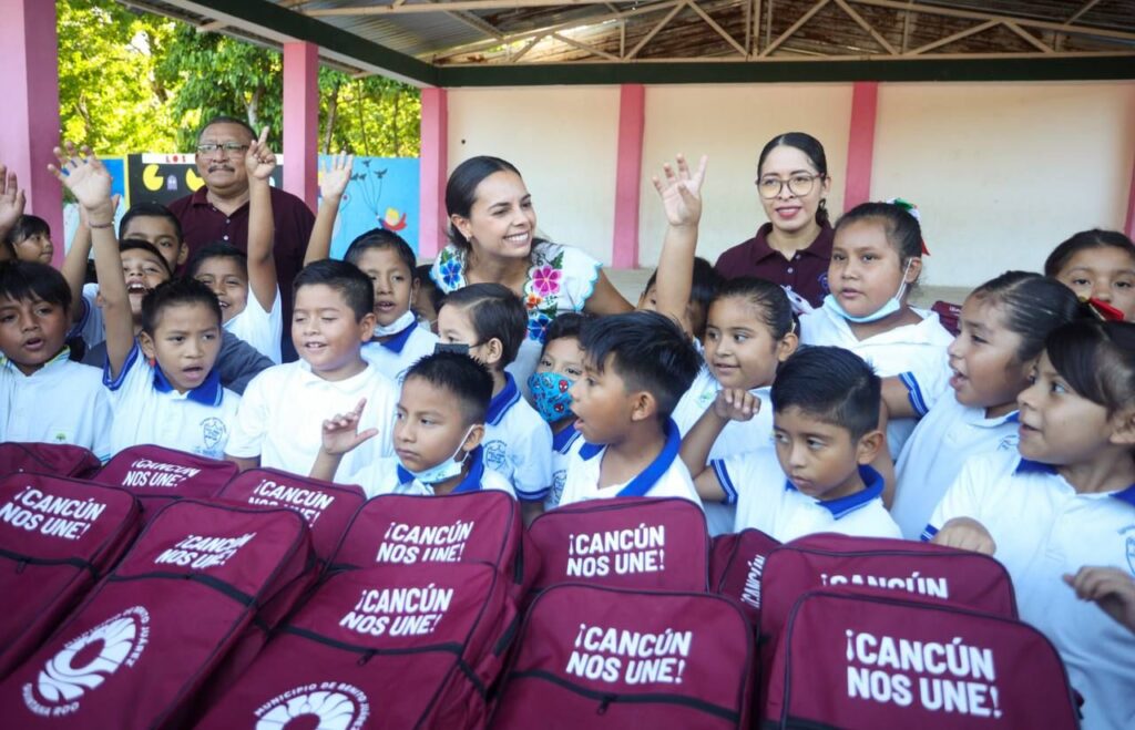 Esta importante entrega inició en las escuelas preescolar “5 de Mayo” y en primaria “Otilio Montaño”, en la Colonia Tres Reyes, donde la Primera Autoridad Municipal expresó estar muy contenta de poder apoyar la educación y la economía familiar de los cancunenses; así como continuar trabajando de manera coordinada entre los tres órdenes de gobierno, redoblando esfuerzos para seguir con la transformación del municipio.