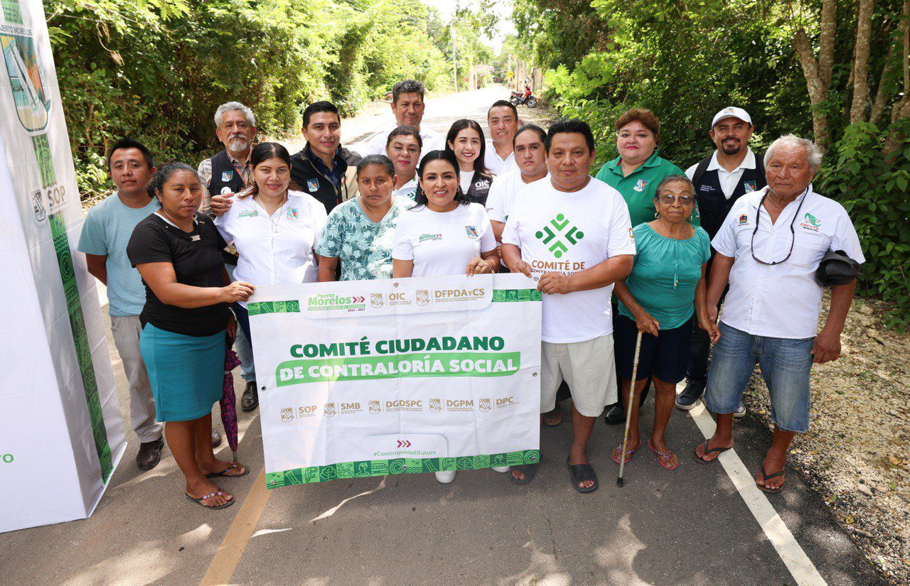 Acompañaron a la presidenta municipal en la inauguración los regidores Antonio Pech Chuc, presidente de la Comisión de Obras Públicas del Cabildo; Rosario Concha Naal y Gonzalo Calderón Poot; así como Juan Poot, Yahaira Domínguez Córdova y Luciana Balam, presidente e integrantes del Comité Ciudadano de Contraloría Social, respectivamente.