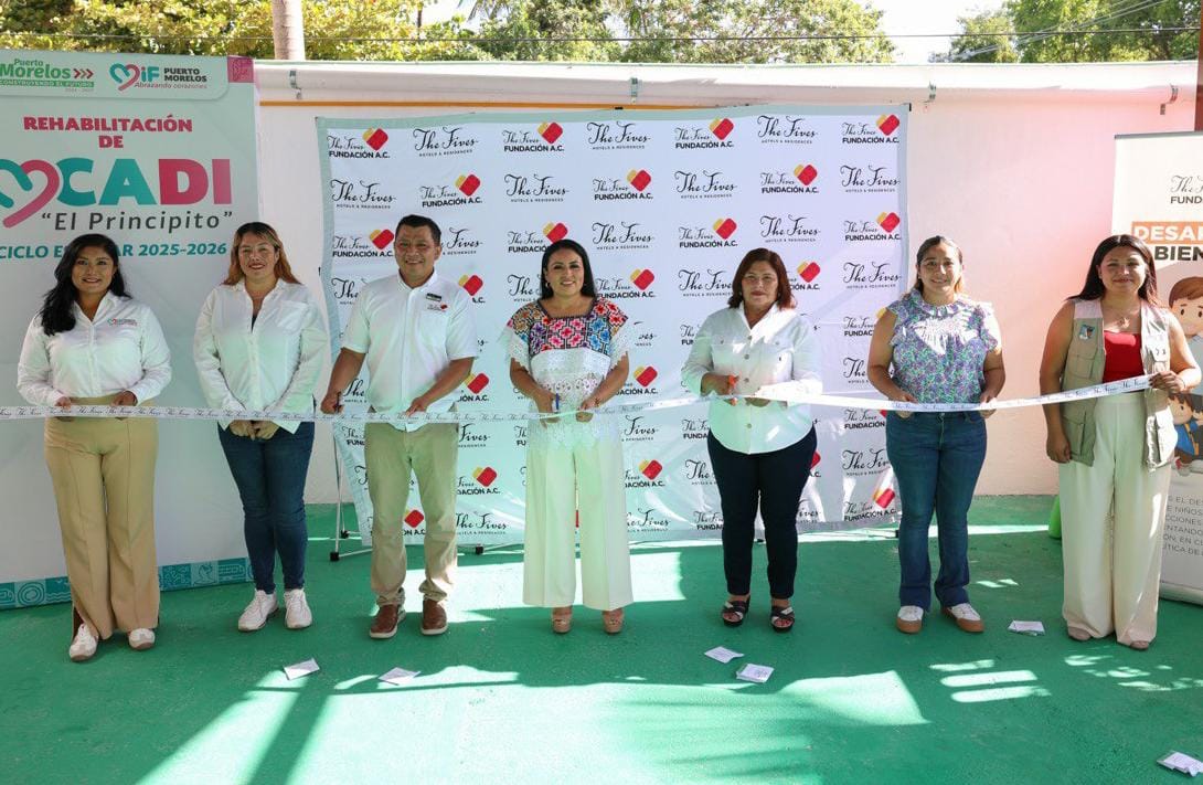 Puerto Morelos (Marcrix Noticias)- La presidenta municipal Blanca Merari Tziu Muñoz entregó hoy la rehabilitación y el equipamiento del Centro Asistencial de Desarrollo Infantil (CADI) “El Principito” y dio inicio al ciclo escolar 2025–2026 en esta institución, donde se forman 70 niñas y niños de Puerto Morelos.