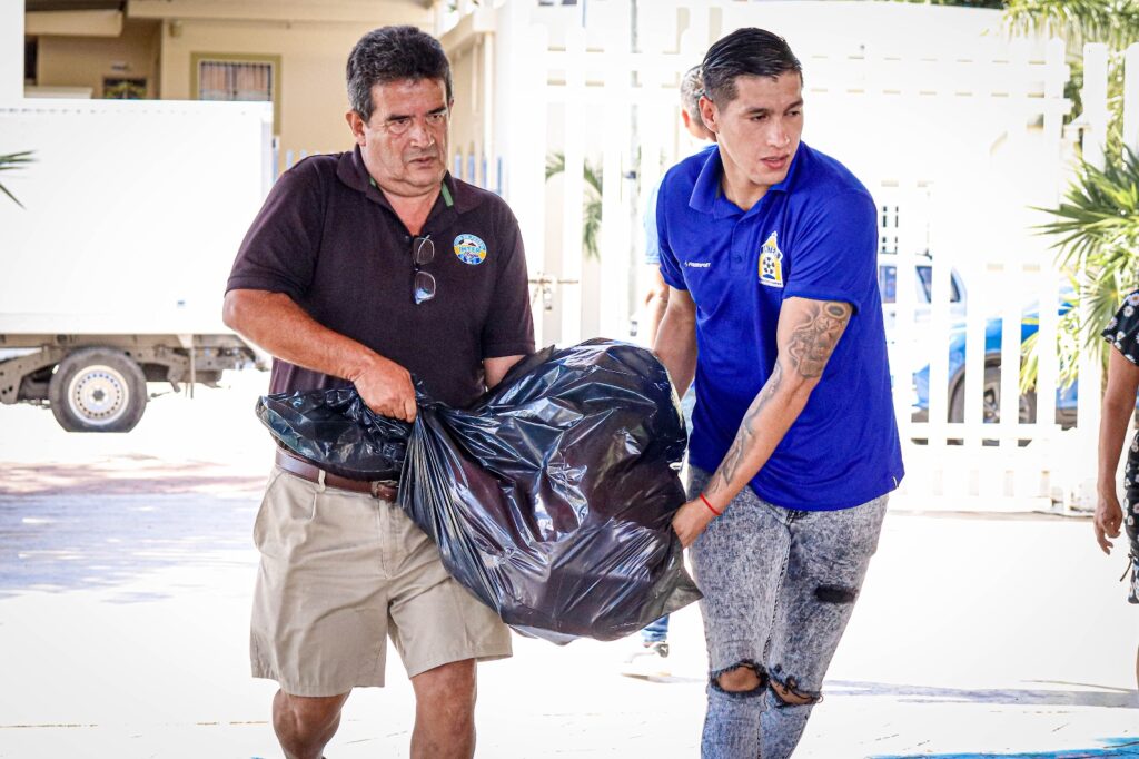Los jugadores Daniel Jiménez, Sergio Meza, Pablo Guzmán y Andrés Pérez junto con directivos fueron quienes hicieron la entrega al Centro de Acopio instalado en la palapa del DIF Solidaridad de paquetes de agua embotellada; bolsas de sopa de pasta, arroz, frijol; latas de atún; aceite vegetal comestible; galletas saladas; papel higiénico, entre otros.