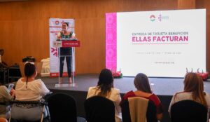 La Gobernadora destacó que el programa “Ellas Facturan” suma dos mil 600 inscritas, que además permite compartir el mensaje a otras ciudadanas para que acaben con la violencia de género y sean independientes económicamente con relación a los gastos familiares.