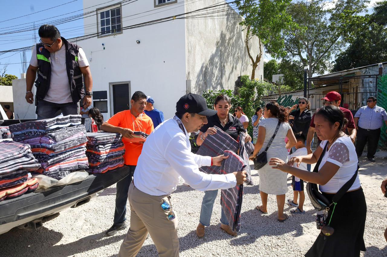 Familias de al menos 17 colonias irregulares recibieron cobijas por el descenso de temperaturas en Cancún.