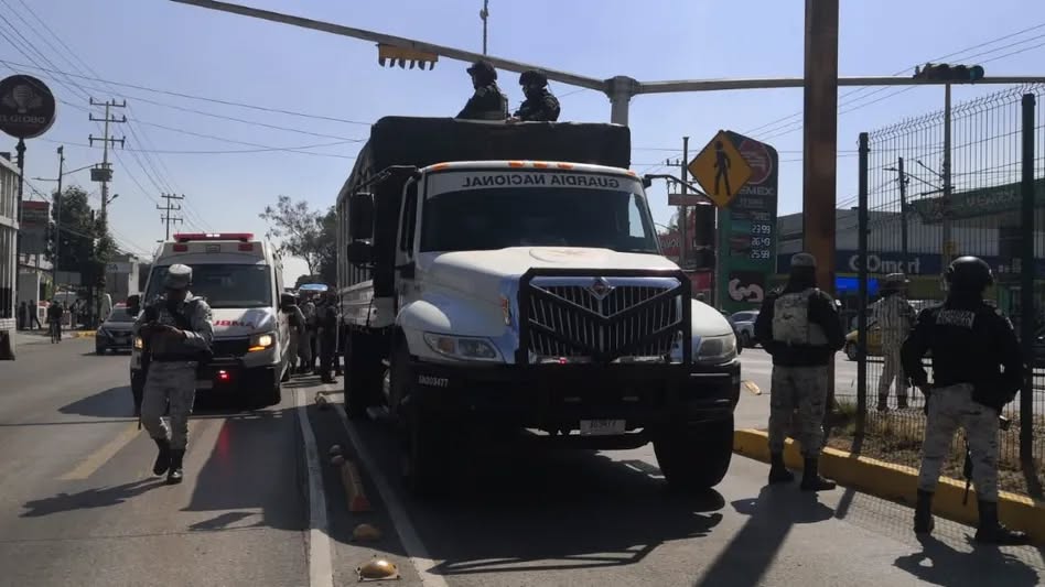 Un muerto y una lesionada en la Av. López Portillo (#Ecatepec) tras ser arrollados por un camión de la Guardia Nacional que invadió el carril del Mexibús y omitió un semáforo en rojo. 🛑⚠️