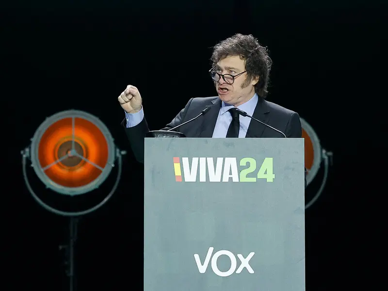 El acto de Madrid fue convocado por el partido español Vox de cara a las elecciones europeas que tendrán lugar el 9 de junio en España. Su líder, Santiago Abascal, definió a Milei como “nuestra estrella rutilante”.