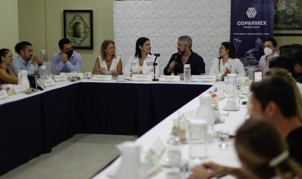 En foro convocado por la Coparmex Riviera Maya, Estefanía Mercado responde a las preguntas del empresariado y expone sus propuestas para atender retos en materia regulatoria, de inseguridad, y crecimiento económico.