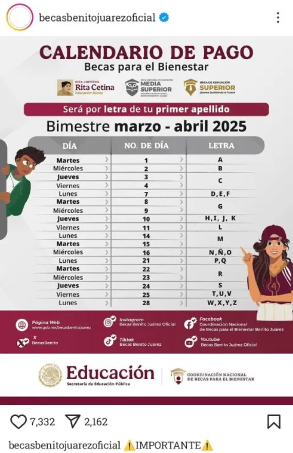 México (Marcrix Noticias).- Si eres beneficiario de la Beca Rita Cetina 2025, ¡mantente alerta! Entre el 7 y el 11 de abril se realizarán los pagos a los beneficiarios cuyos apellidos inicien con las letras correspondientes.